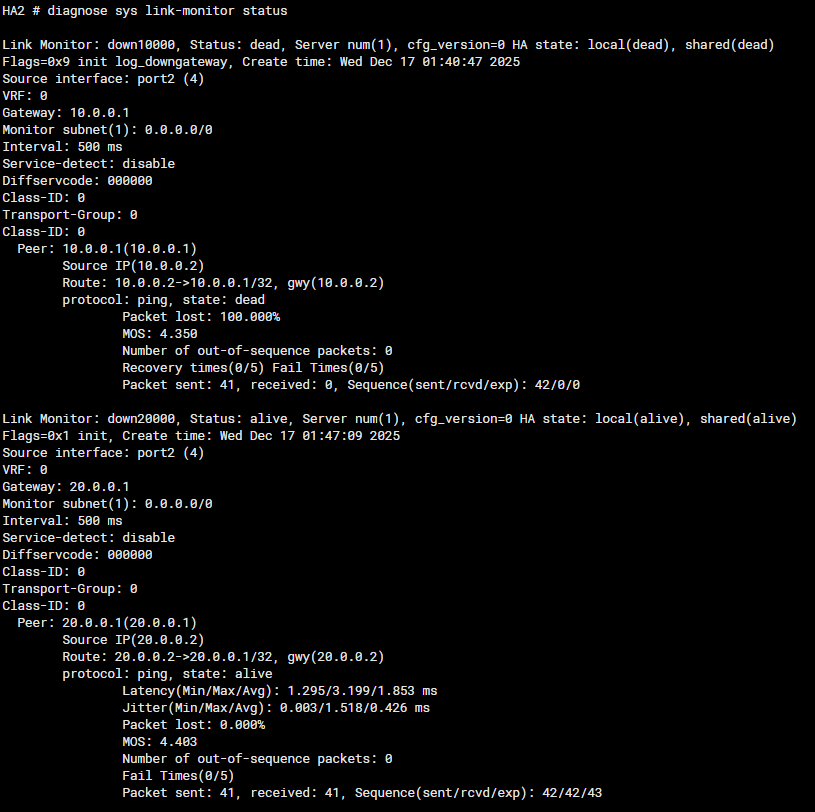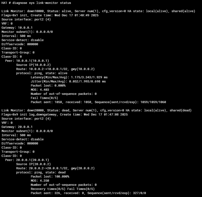 Da notare che il link-monitor ha effetto su rotte statiche e PBR ma non ha effetto su SD-WAN policy o interfacce membri di una zona.